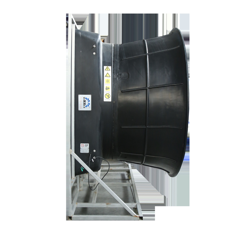 مروحة العادم من طراز "تيروي" بطول 72 بوصة بنيت لتستمر مع تصميم متين ودرجة حماية IP55مع محاور عينية مثبتة مسبقاً للسلسلة، مما يجعلها خيار رائع للمصانع والمستودعات وغيرها من التطبيقات الصناعية.