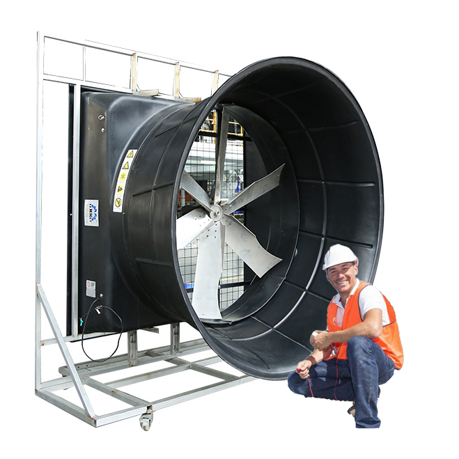 ويحسن صحتها وإنتاجيتها بشكل عام.تساعد المروحة أيضًا في تنظيم درجة الحرارة داخل الحظيرة، خاصة خلال الطقس الحار. إنه يخلق تأثير تبريد، مما يجعل البيئة أكثر احتمالًا للماشية.علاوة على ذلك، يمكن للتهوية الجيدة التي توفرها مروحة العادم مقاس